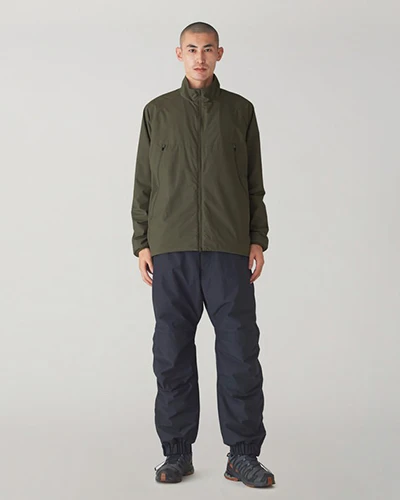 The 2L Octa Jacket is an insulated, water-resistant jacket with high heat retention, wind-proofing, and a DWR finish. The face fabric is made from a stretchable ripstop polyester, with a polyurethane laminated internal layer for water-repellence and breathability. The jacket features a stand collar with a chin guard, raglan sleeves, elastic ribbed cuffs, an adjustable hem, dual zipper closure, and dual zippered side pockets.