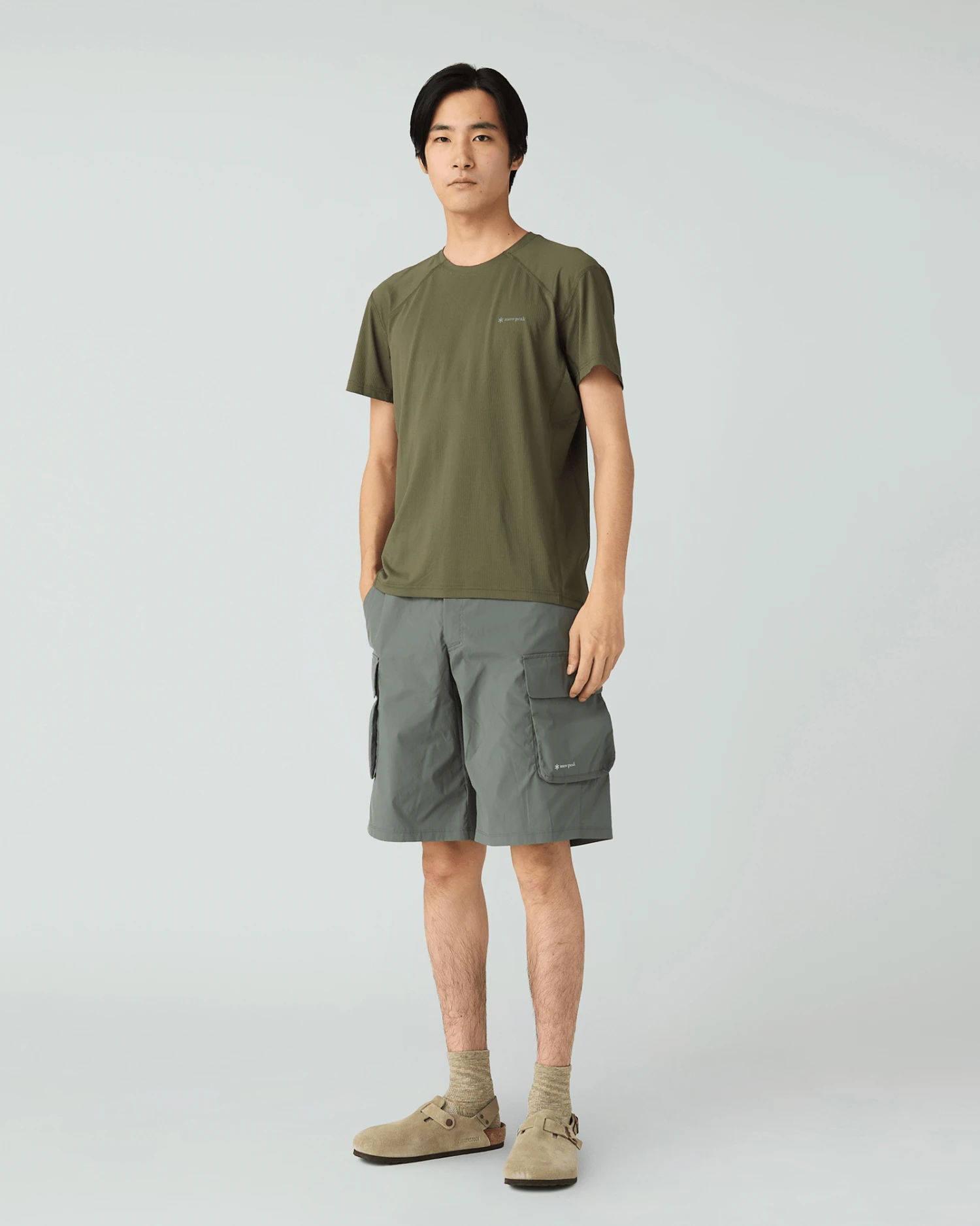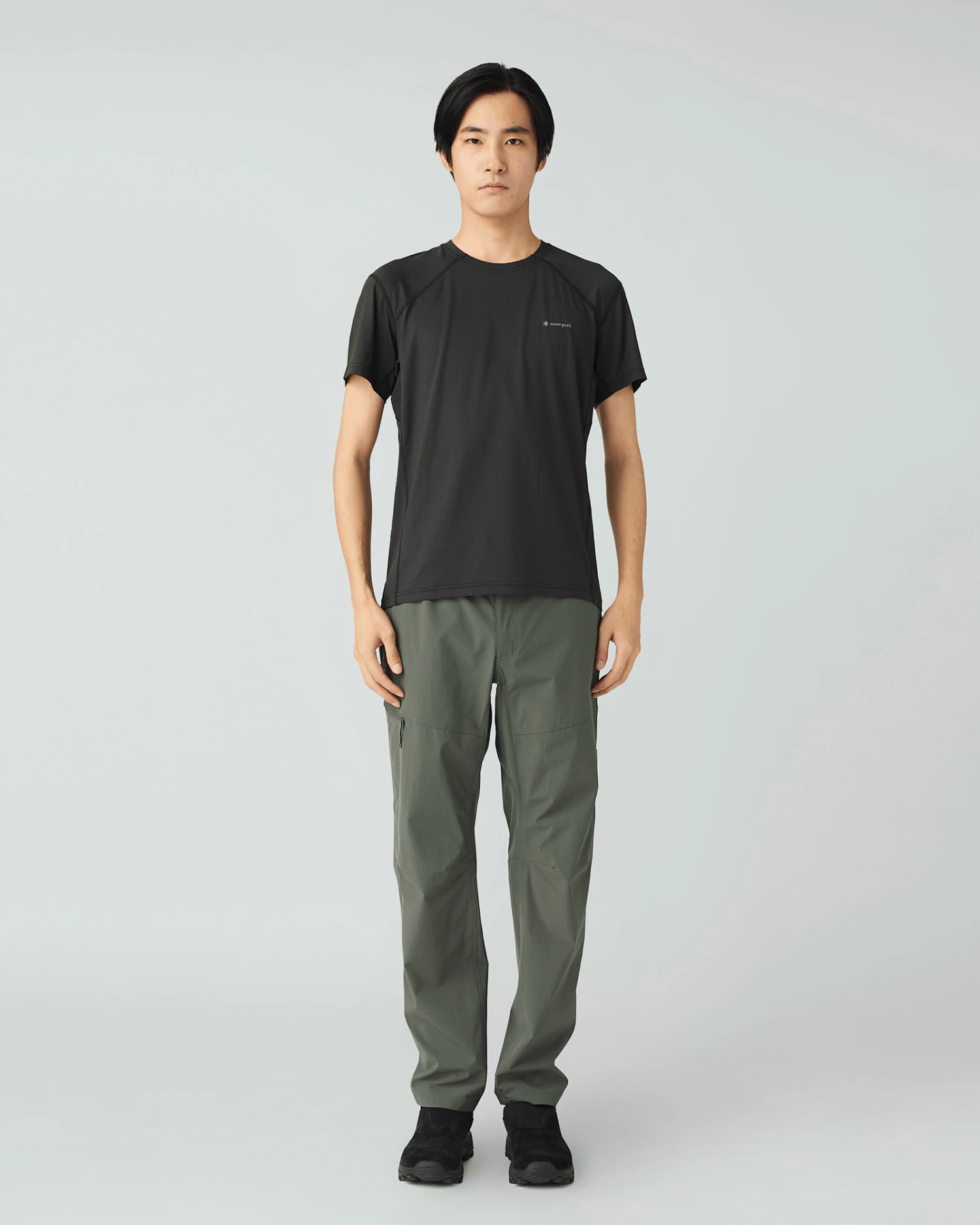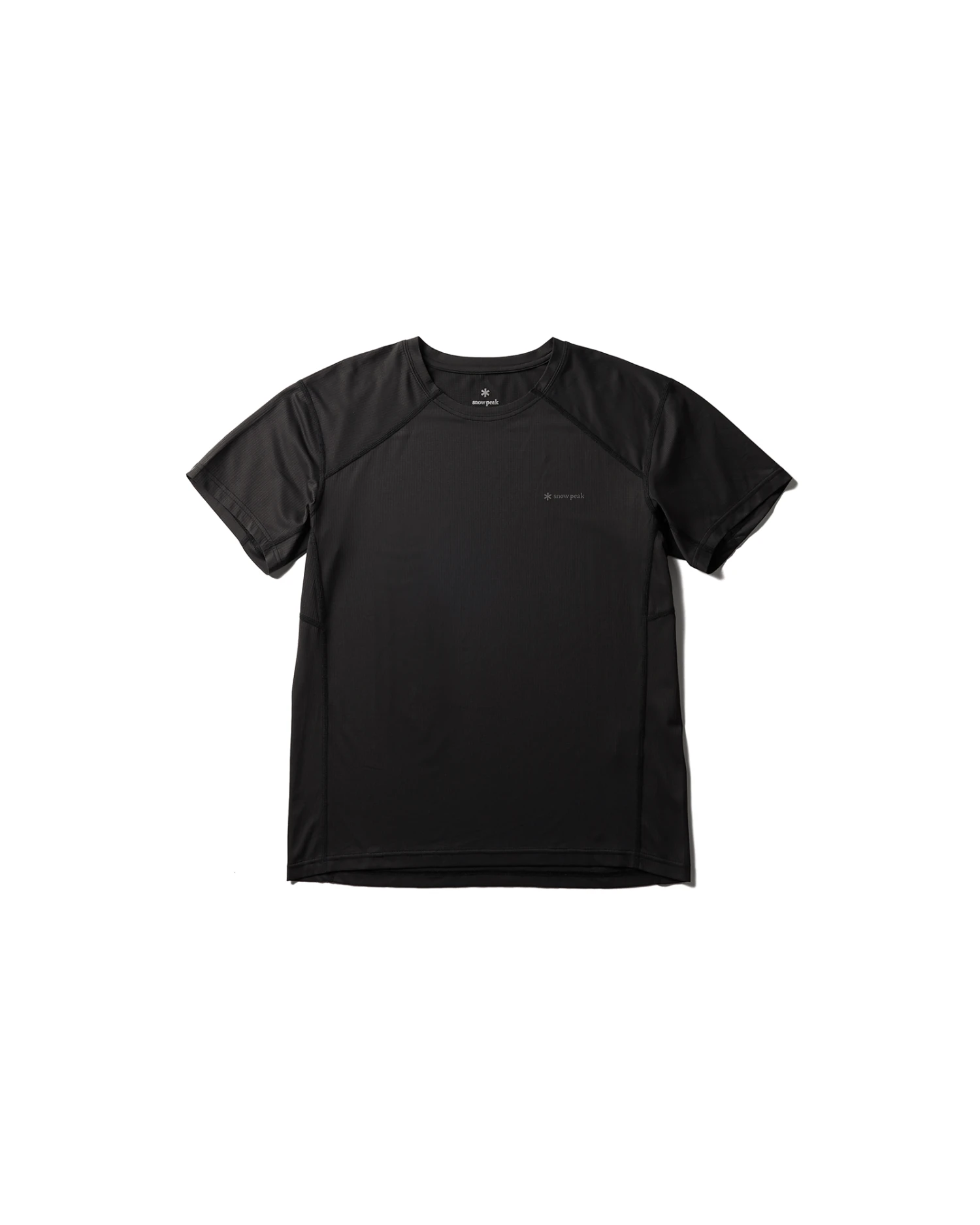 The T-shirt features a 3D construction offering greater freedom of movement, short sleeves, and a crew neck. A Snow Peak logo is featured on the left breast.