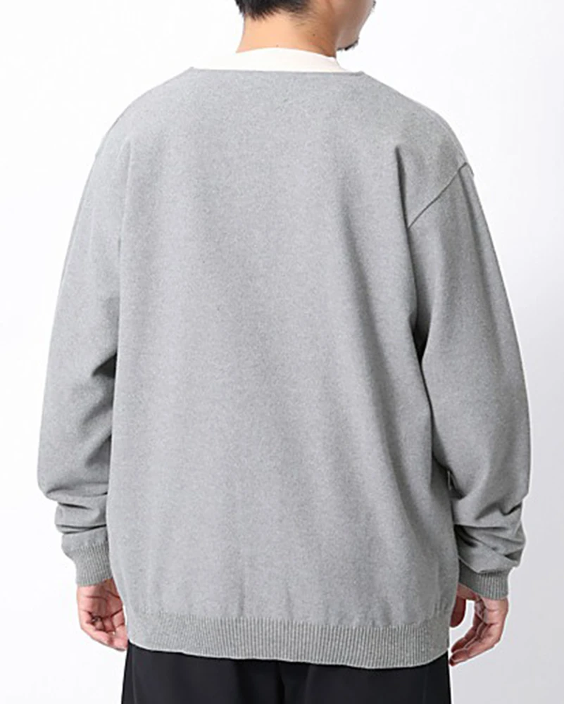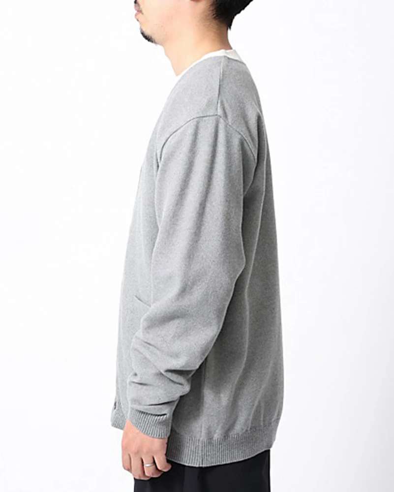 The Cotton Polyester Knit Cardigan is designed to fit loose on the body. We recommend taking your normal size for a standard fit. The model stands 6′ and wear size L.