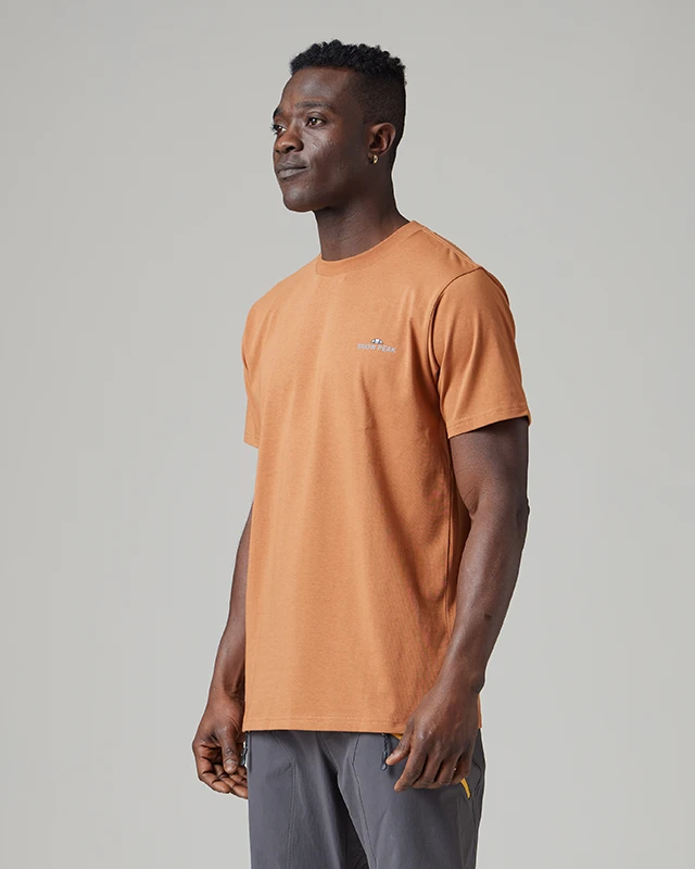 The Fieldscape T-Shirt is designed to fit loose on the body. We recommend taking your normal size for a standard fit. The model stands 6′ and wears size L.
