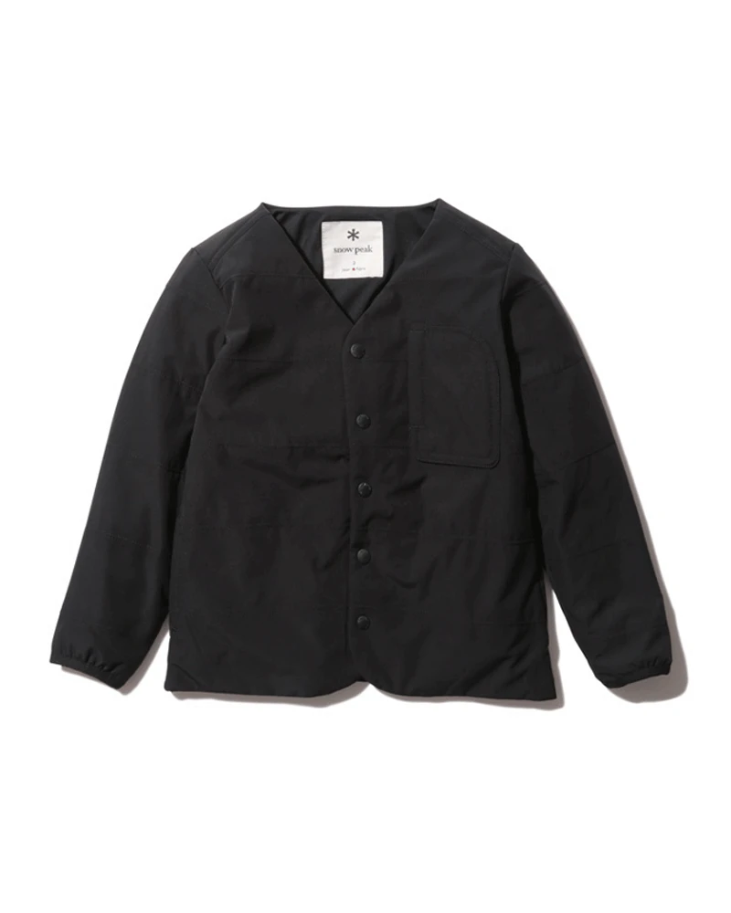 The Kids Flexible Insulated Cardigan is a lightweight, collarless jacket. The cardigan is made of recycled polyester and Primeflex material with a durable stretch and a water-repellent finish. The Kids Flexible Insulated Cardigan features a v-neck opening, snap button closures, a left chest pocket, and dual pockets at the waist.