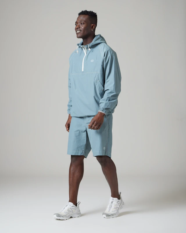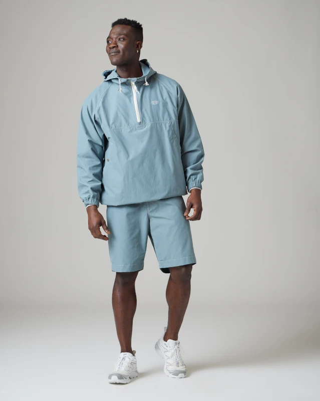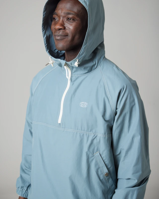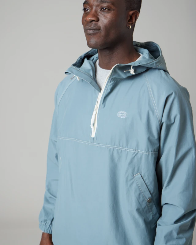 The Light Mountain Cloth Parka is a casual lightweight pullover jacket. The parka is made of cotton, nylon, and c6 water repellent. The Light Mountain Cloth Parka features a hood with a hidden drawcord, henley zipper, drop shoulders, dual side pockets, and elastic cuffs.