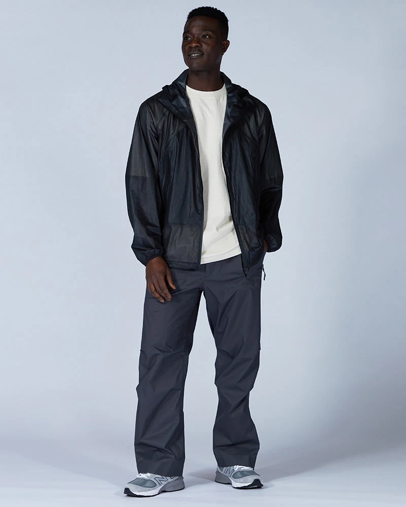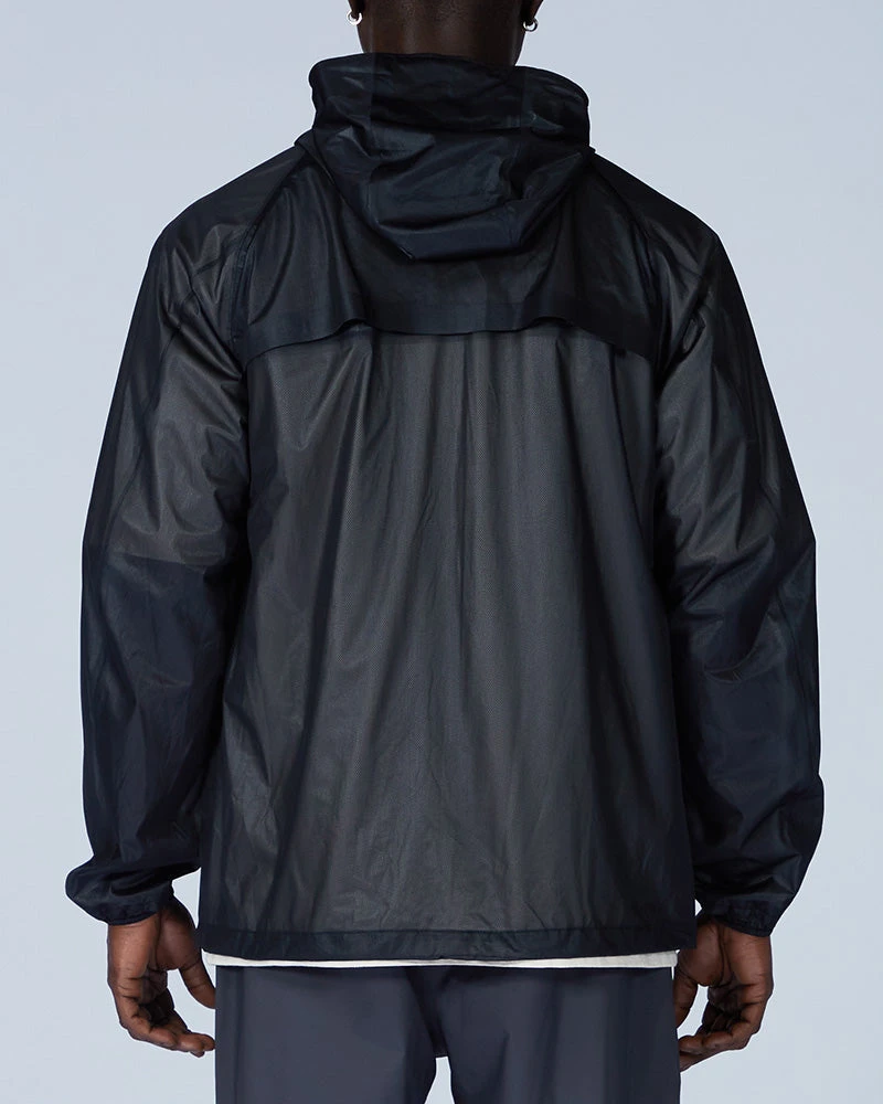 The Light Packable Rain Jacket is a waterproof and stretchy outer layer. The jacket is made of 3-layer, 100% recycled polyester and is fully seamed for maximum waterproofness. It features a hood, full zip, dual front pockets, a back vent, and a packable bag.