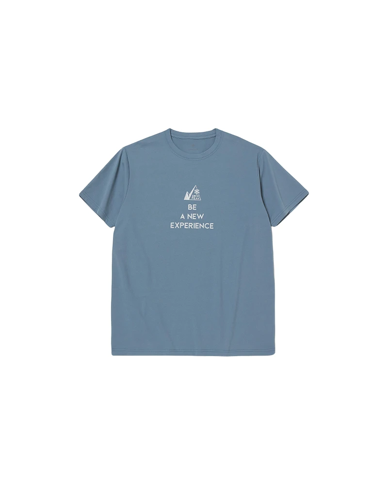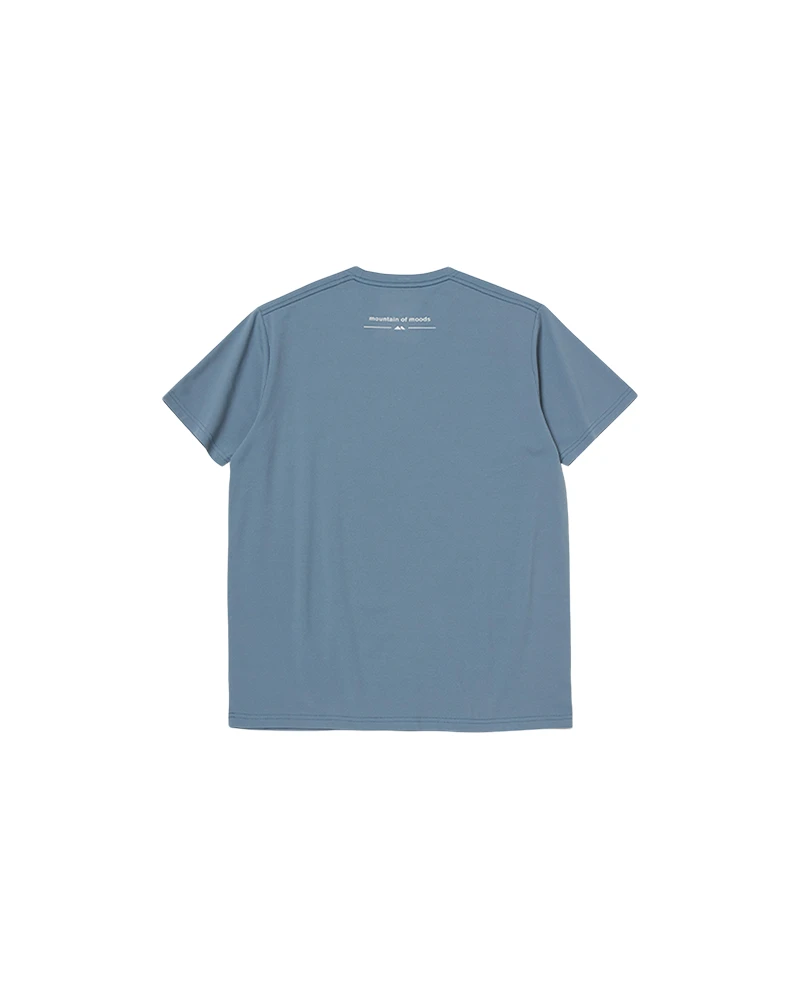 The Message T-Shirt is a printed short-sleeved moisture-wicking shirt. The shirt is made of polyester and has a text and logo graphic on the front, with a Mountain of Moods logo below the collar on the back. The Message T-Shirt features a crew neck, short sleeves, and a printed chest.