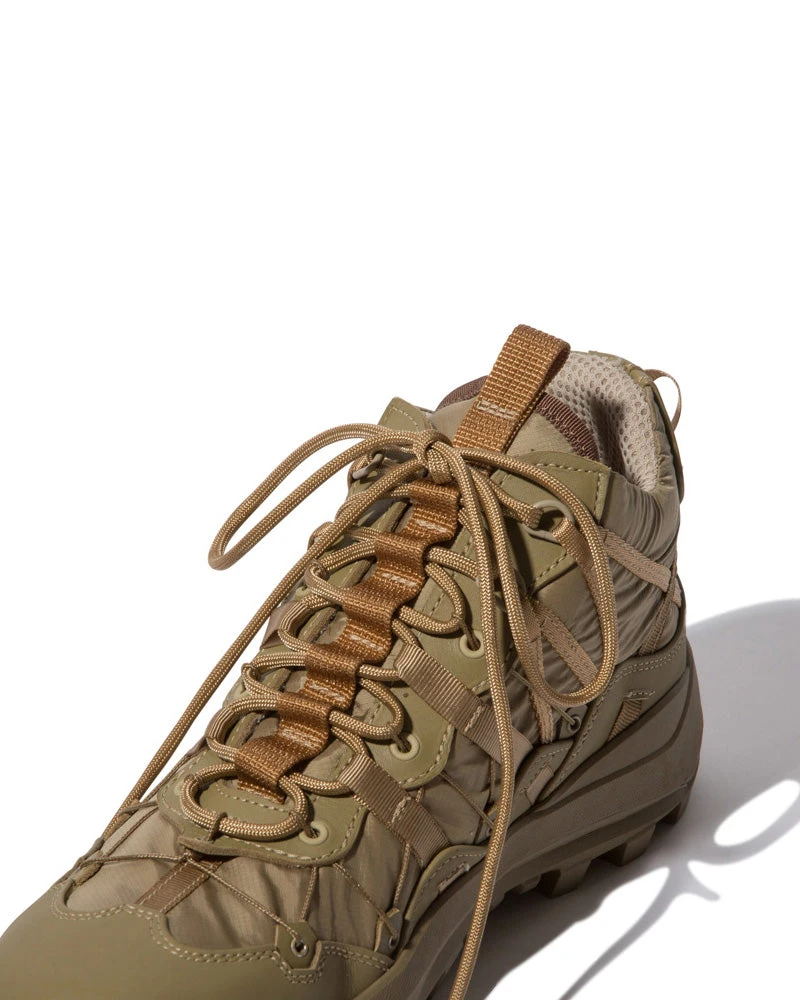 The Mountain Trek Shoes are a hybrid of trail running shoes and trekking boots. The lightweight shoes offer large grooves on the sole for gripping the ground in muddy conditions, ankle stability, and water resistance. The Mountain Trek Shoes feature a nylon upper, lugged sole, tongue with pull tab, and laces.