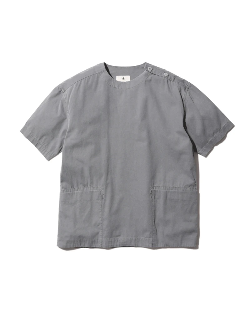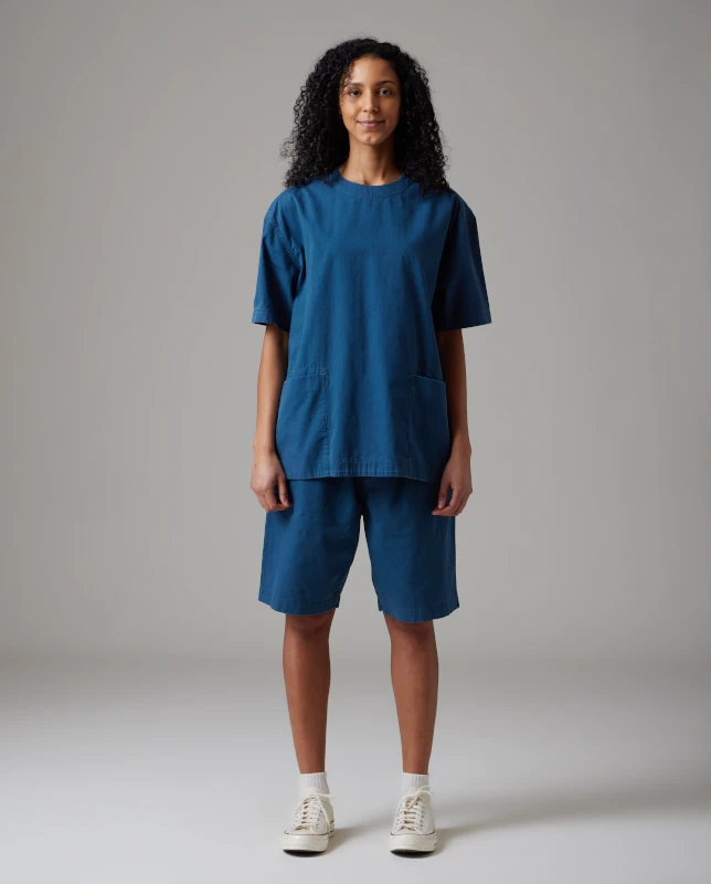The Natural-Dyed Recycled Cotton Pullover is a relaxed crewneck pullover. The pullover fabric is lightweight recycled cotton dyed with eco-friendly natural dye. The Natural-Dyed Recycled Cotton Pullover features a crewneck, button closure on the shoulder, short sleeves, dual front pockets, and a straight hem.