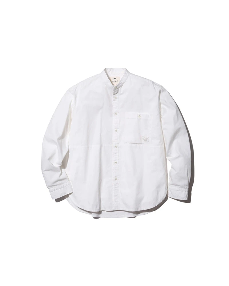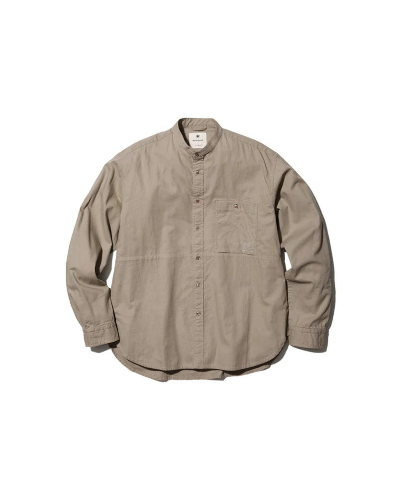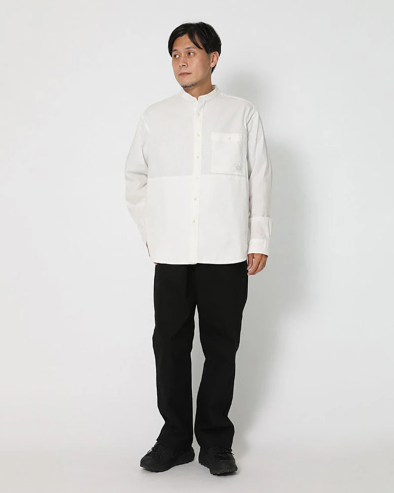 The Organic Cotton Poplin Stand-Collar Shirt is a lightweight soft shirt. The shirt is made with woven organic cotton thread. The Organic Cotton Poplin Stand-Collar Shirt features a stand collar, left bust pocket, and dual side pockets.