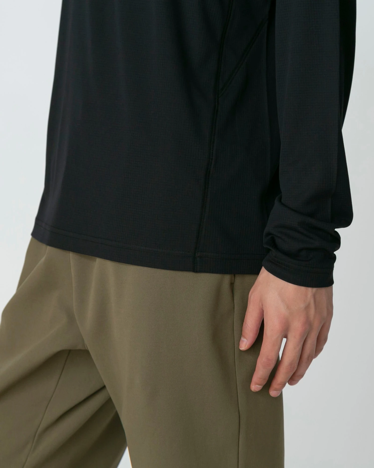 The Pe Power Dry Long Sleeve T-Shirt is a quick-drying technical base layer. The polyester fabric has a grid texture and is treated with peppermint oil as an antibacterial protection. The Pe Power Dry Long Sleeve T-Shirt features a crew neck, long sleeves, and a straight hem.