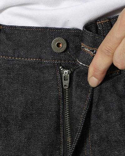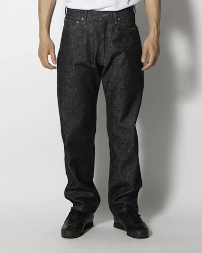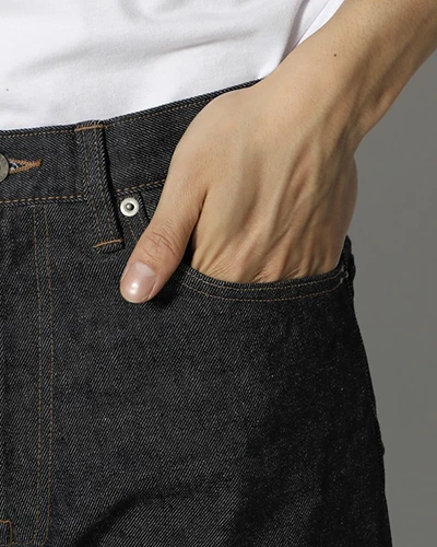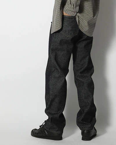 The Recycled Cotton 5pkt Denim Regular is a 12.6oz selvedge denim pant. The fabric is 100% recycled denim, with yarn sourced from Guatemala and woven in Japan. The denim features a button closure, zip fly, five pockets, and a straight leg opening.