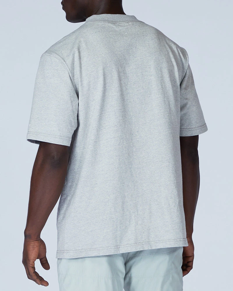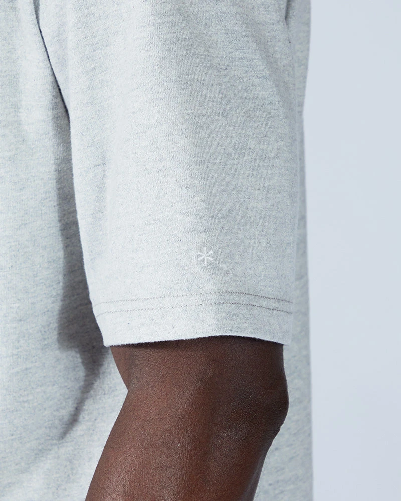 The Recycled Cotton Heavy Mockneck T-Shirt is designed with a standard fit with the shirt fitting loose on the body and hem hitting below the waist. We recommend taking your normal size for a standard fit. The model stands 6′ and wears size L.