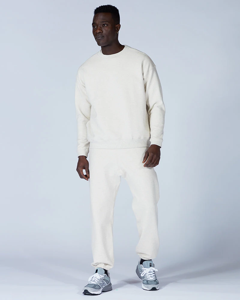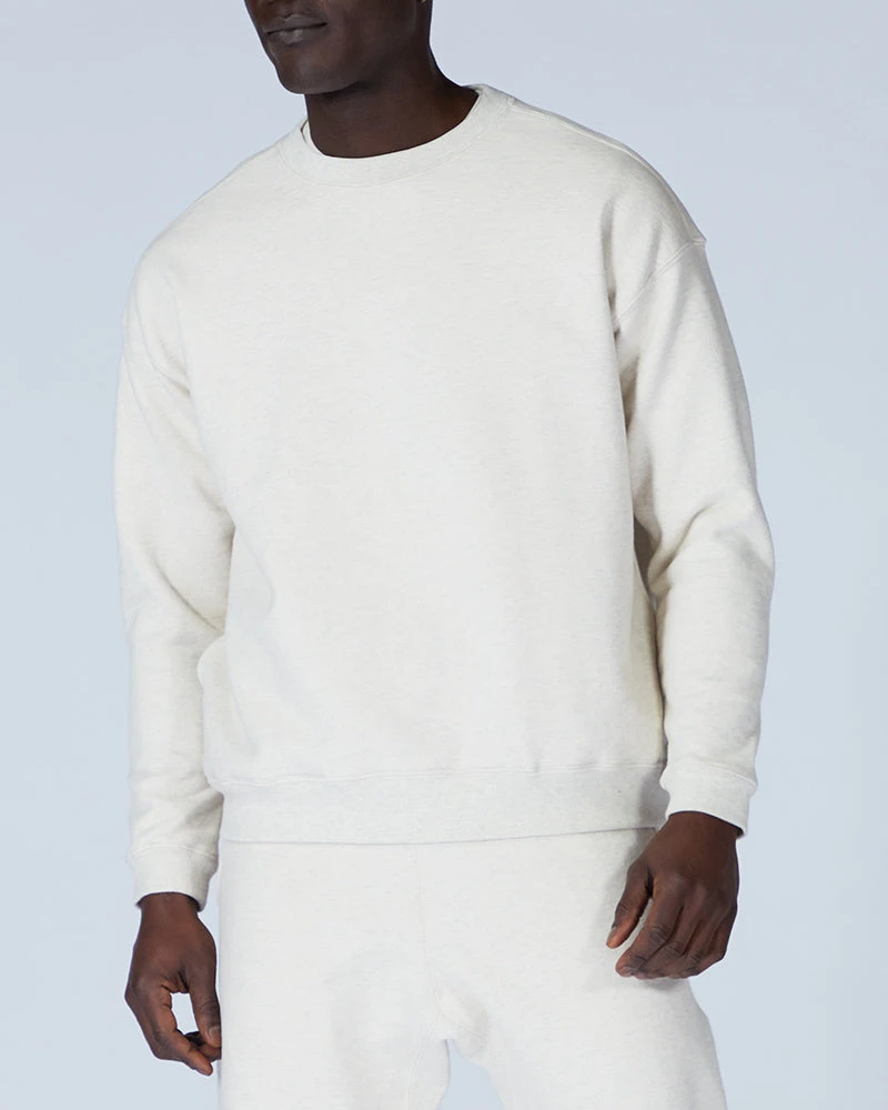 The Recycled Cotton Sweat Crewneck is designed with an oversized fit, with the sweatshirt fitting loose on the body and hem hitting below the waist. We recommend taking your normal size for an oversized fit. The models stand 6′ and 5’10” respectively and wear size M.