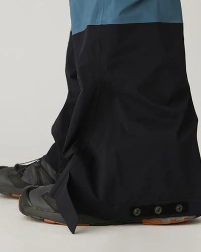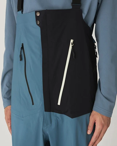 The Snow Bib Pants are waterproof softshell bib pants. The pants are made of durable nylon and feature adjustable suspenders, a central zipper, dual zippered chest pockets, and dual zippers at the hem.