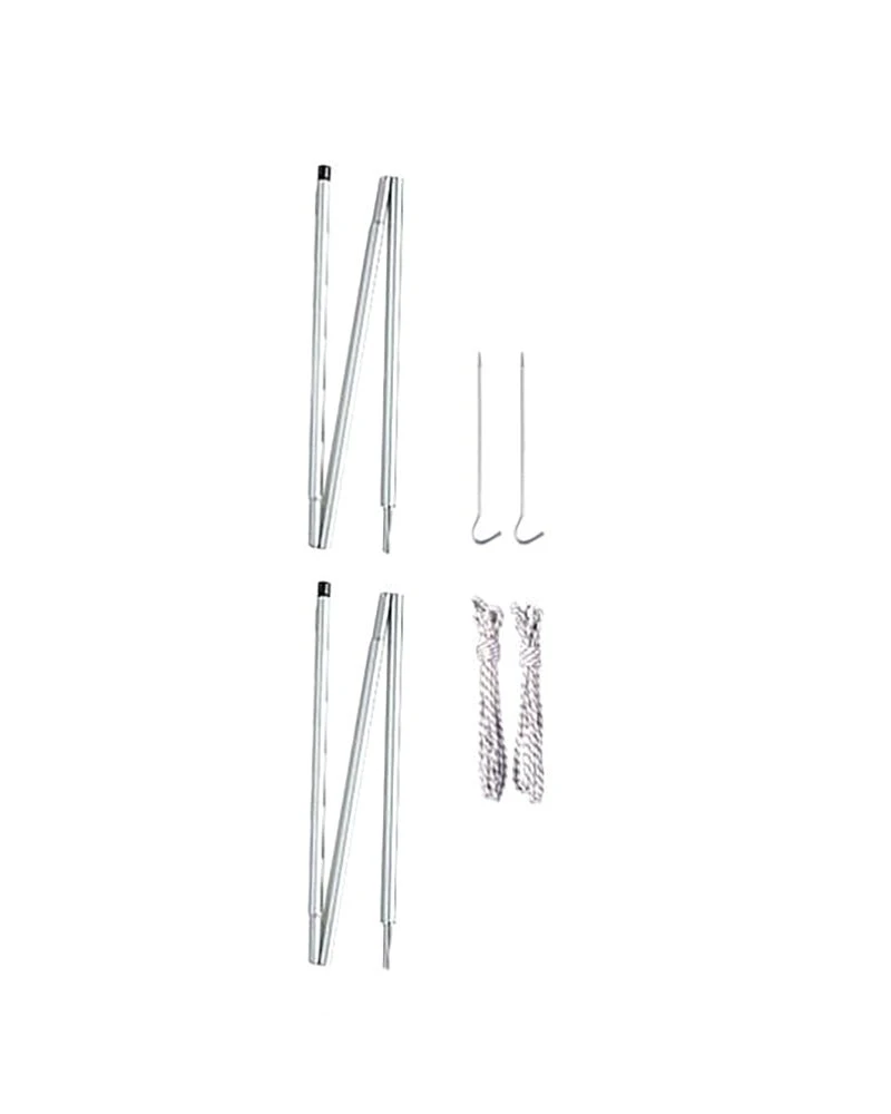 The Amenity Dome Upright Pole Set includes two aluminum poles, rope, and pegs. Use the set to prop up the front flap of the tent for a sheltered gathering space. The three-piece poles are attached by a spring system to keep them together. Pair the Amenity Dome Upright Pole Set with the Amenity Dome Series.