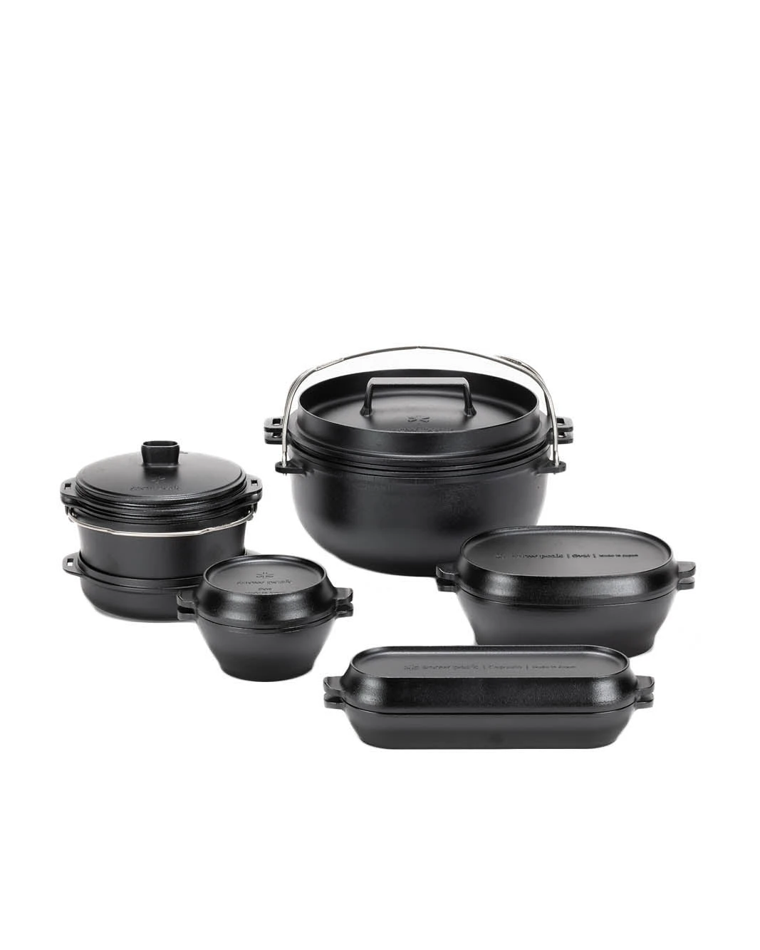 Made in Japan of premium cast iron, the Cast Iron Oven is a kitchen staple. The Cast Iron Oven features a rounded bottom for increased heat conduction, and both the pot and skillet are compatible with induction stovetops. Whether cooking in the campfield or the home, use the three-piece Cast Iron Oven for meals that gather people together. Pair the Cast Iron Oven 26cm with the
