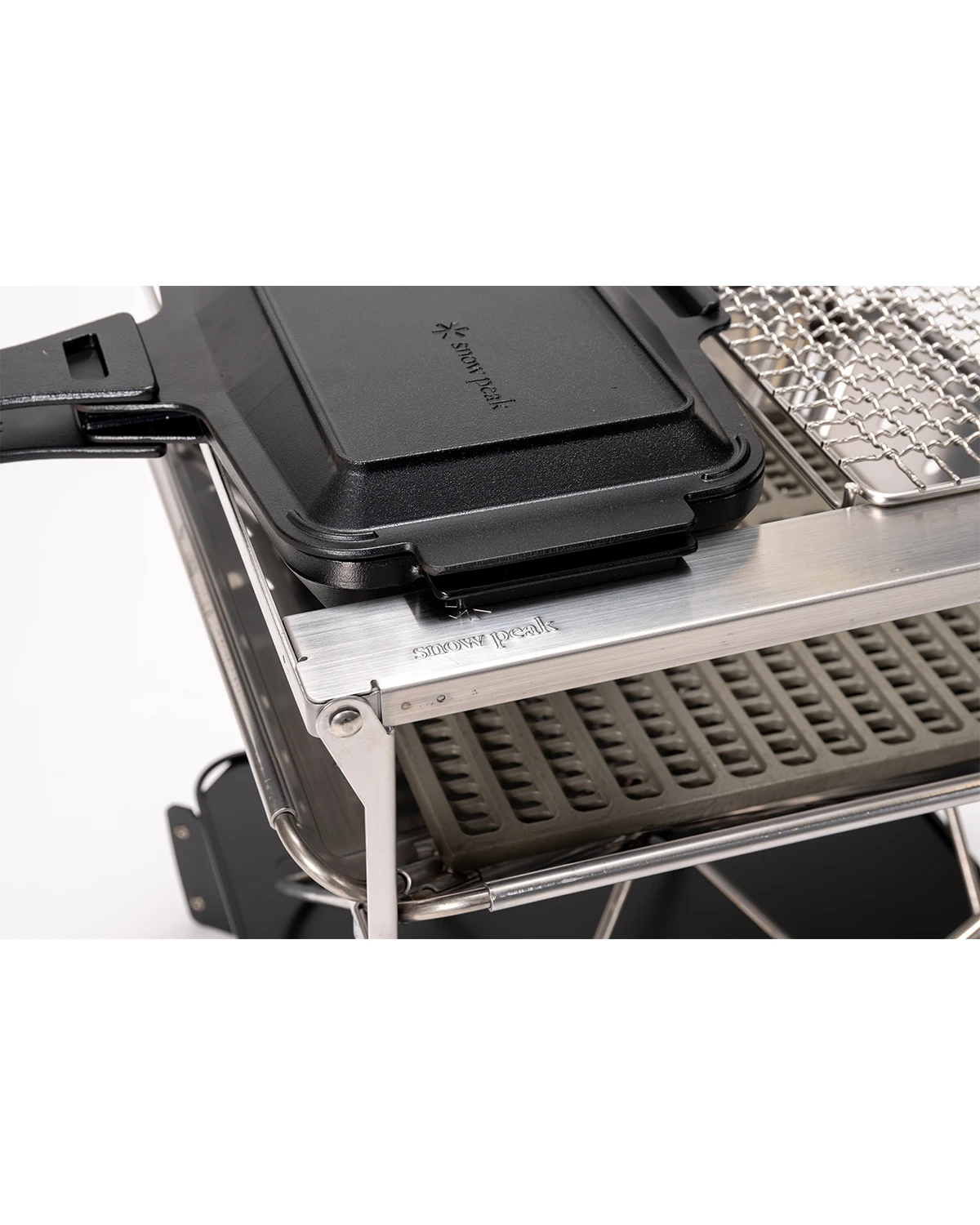 One side of the skillet features high ridges, allowing you to sear food with grill marks while elevating it above drippings. The other side features a smooth surface ideal for leveraging the non-stick properties of cast iron. Each side takes up approximately half the space of a Fireplace Grill Bridge L, making it an ideal modular addition to your Takibi Fire & Grill.
