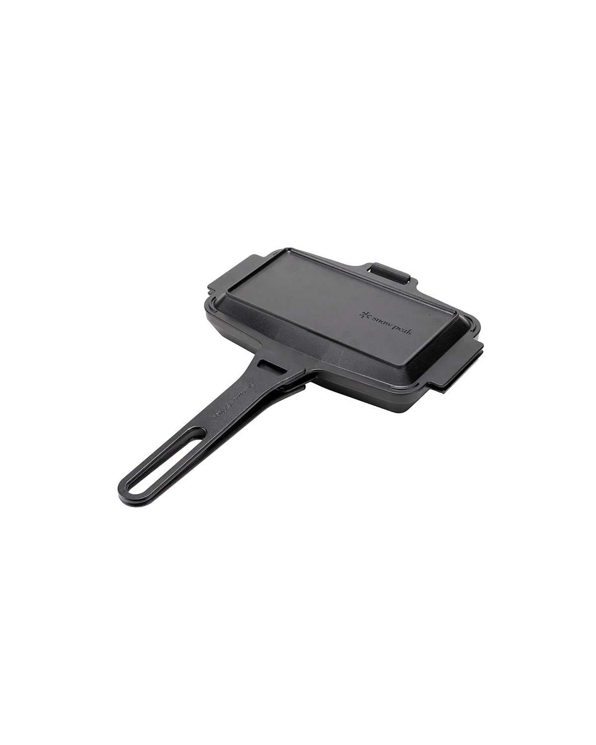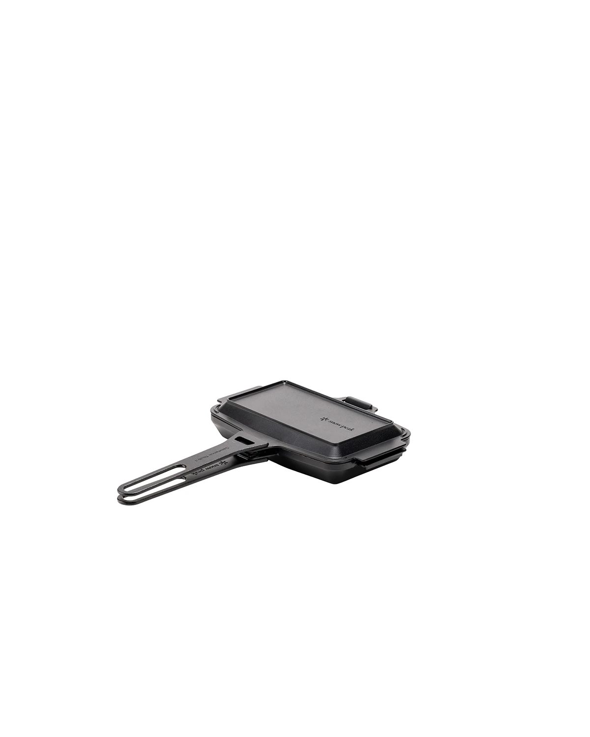 The Cast Iron Sandwich Skillet is a versatile cast iron cooking tool. The skillet features two sides that can be locked together to create a sandwich press or separated and used individually. Each side includes a removable handle, which can be used in a variety of ways, either independently or together.