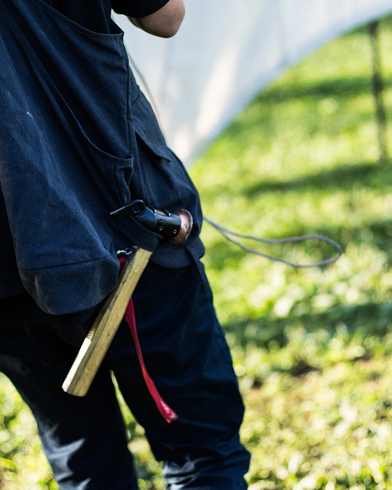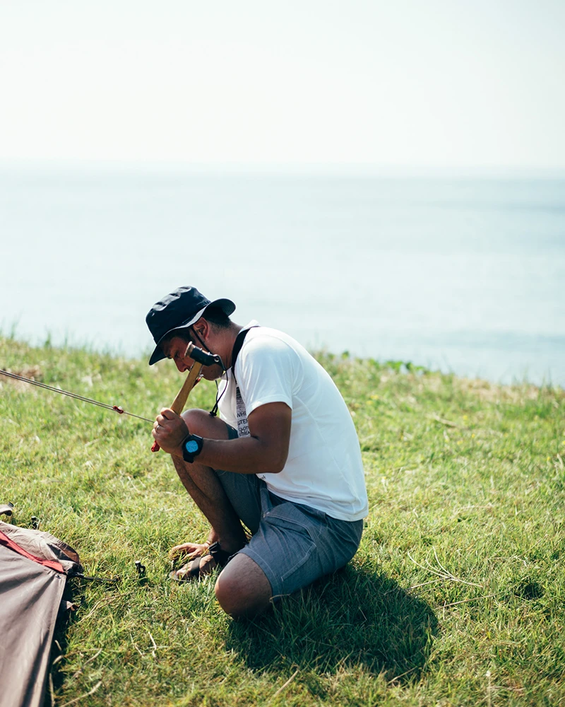 Designed in Japan, the Copper Head Peg Hammer is made of forged steel using a historic manufacturing process. Use it to drive and remove Solid Stakes into the ground. The copper head will decrease shock while hammering and provides an even blow. The Copper Head Peg Hammer also features a solid wood handle, a strap for safe hammering, and a pick and loop for easy stake removal.Â