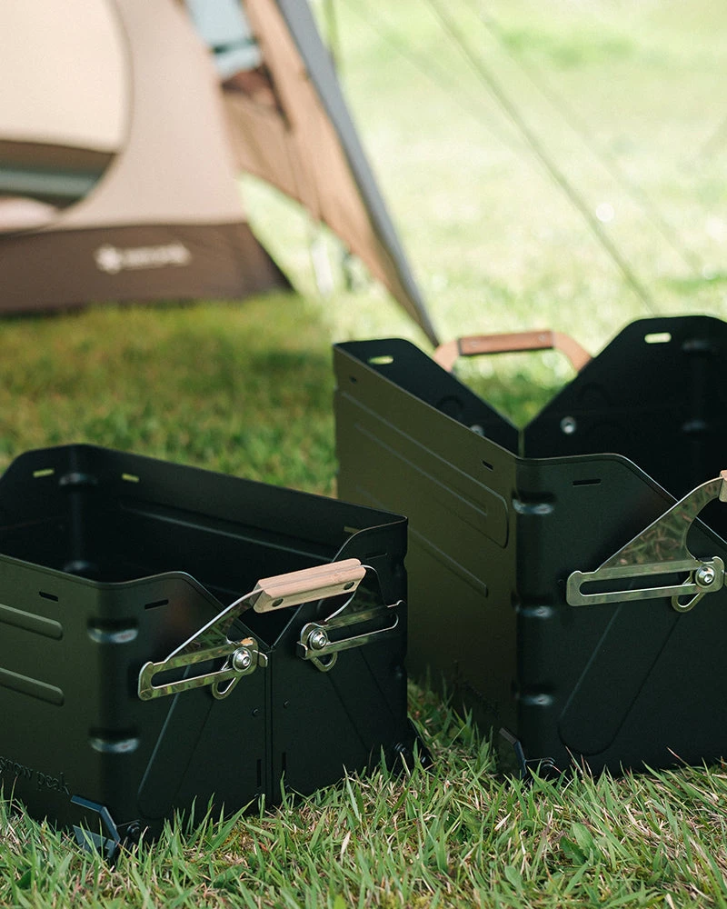 The Festival: Stacking Shelf Container 50 is a versatile storage solution. Keep it at home for convenient storage, or use it as a grab-and-go option for your camping gear. The Stacking Shelf Container 50 features bamboo handles for extra style and can also fold open to store bulky items such as firewood or blankets. Stack several containers to form a sturdy and durable shelf.Â