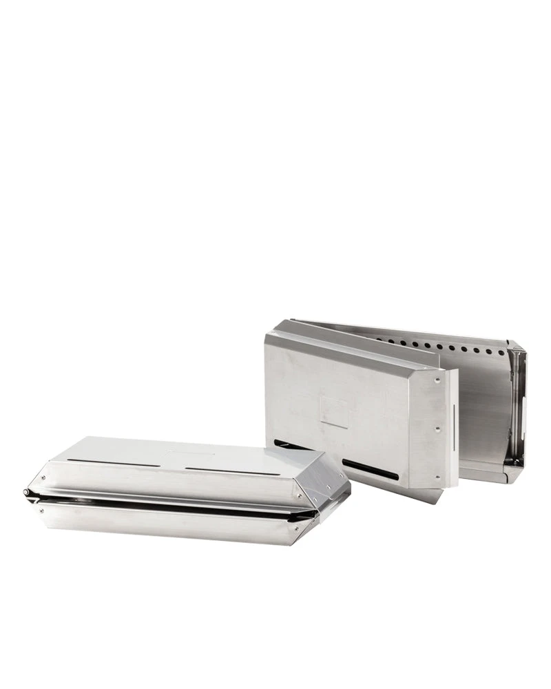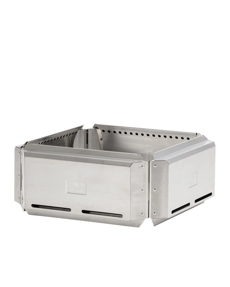 The Floga is a fireplace wall attachment that reducesĀ smoke and campfire smells while generating secondary combustion by pre-heating and altering the airflow. Designed in Japan, the Floga is made of durable stainless steel andĀ features a simple folding assembly. To use, gently place upon the LargeĀ PackĀ & Carry Fireplace when burning wood or coals to reduce the amount of smoke and smoke smells. After use, allow the unit to cool before using a dry brush to clean soot and dirt then let it air dry before placing it in its storage case.