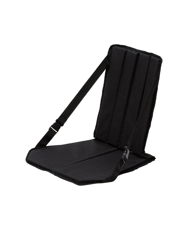 Designed in Japan, the Ground Panel Chair is a simple, legless chair, ideal for camping or viewing sporting events. The self-supporting backrest provides firm back support with multiple cushion panels to ensure comfort even while sitting for long periods of time. Multiple adjustable buckles allow for additional personalization to fit each body’s needs. When not in use, fold the two larger panels onto one another, and fold in half along the panel seams. Pair with the