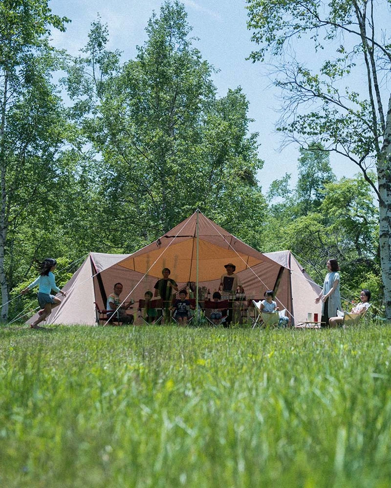 The Land Station Set is a complete tarp kit designed to accommodate up to eight people. With a variety of set-up options, the Land Station is a natural centerpiece in camp, whether for sleeping or gathering. The Land Station is designed to protect from the elements like wind and rain and is made from a fabric that shelters from the sun, while still letting in light. Along with the tarp, the Land Station Set also includes four