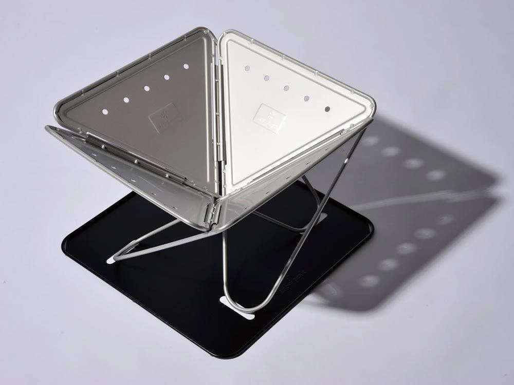 Designed and manufactured in Niigata, Japan the Pack & Carry M Fireplace is made of durable stainless steel. Use the Pack & Carry Fireplace as the centerpiece of gatherings in your backyard or the campfield. The fireplace folds flat for easy transportation and storage, and integrates with a variety of cooking and grilling accessories for an all-in-one fire pit solution. Each purchase includes one fireplace and a nylon carry case. Pair the Pack & Carry M Fireplace with theÂ