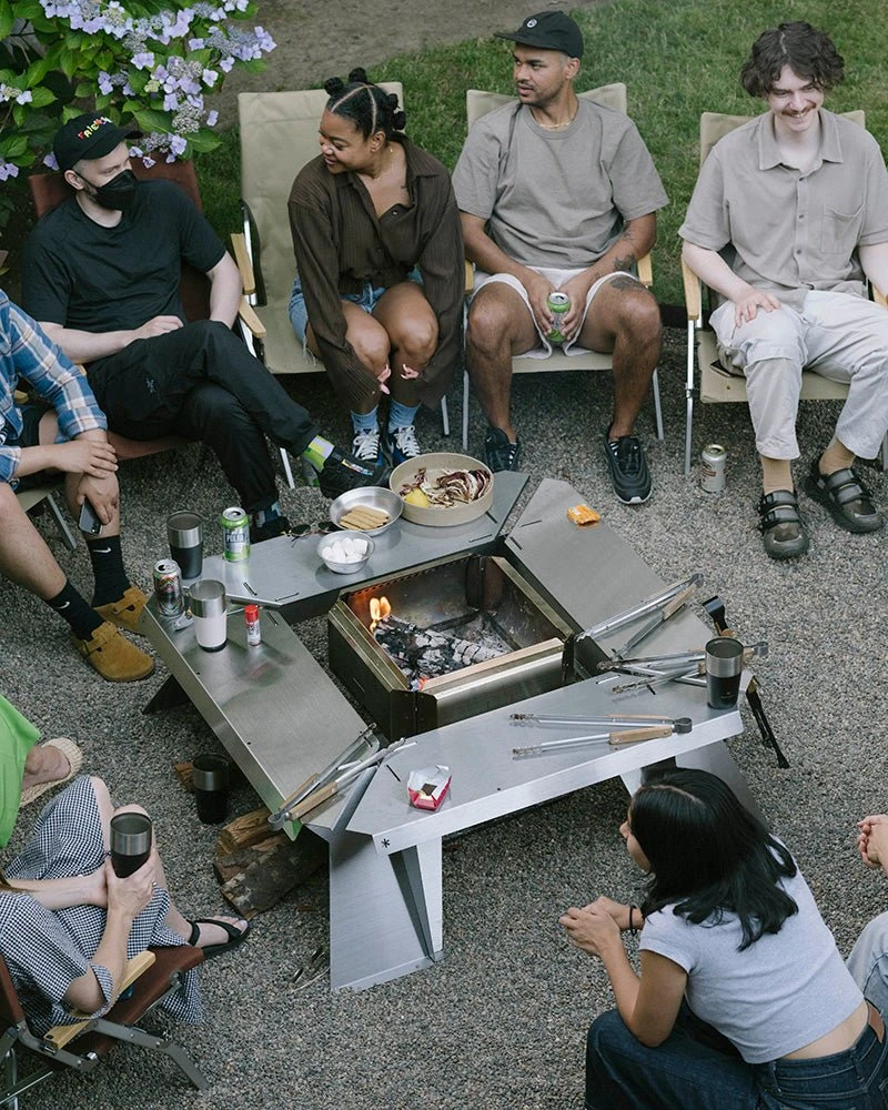 The Garden Takibi Table is a stationary gathering and dining table. The table features ferritic, non-hardenable chromium stainless steel. Use the Takibi Garden Table with the