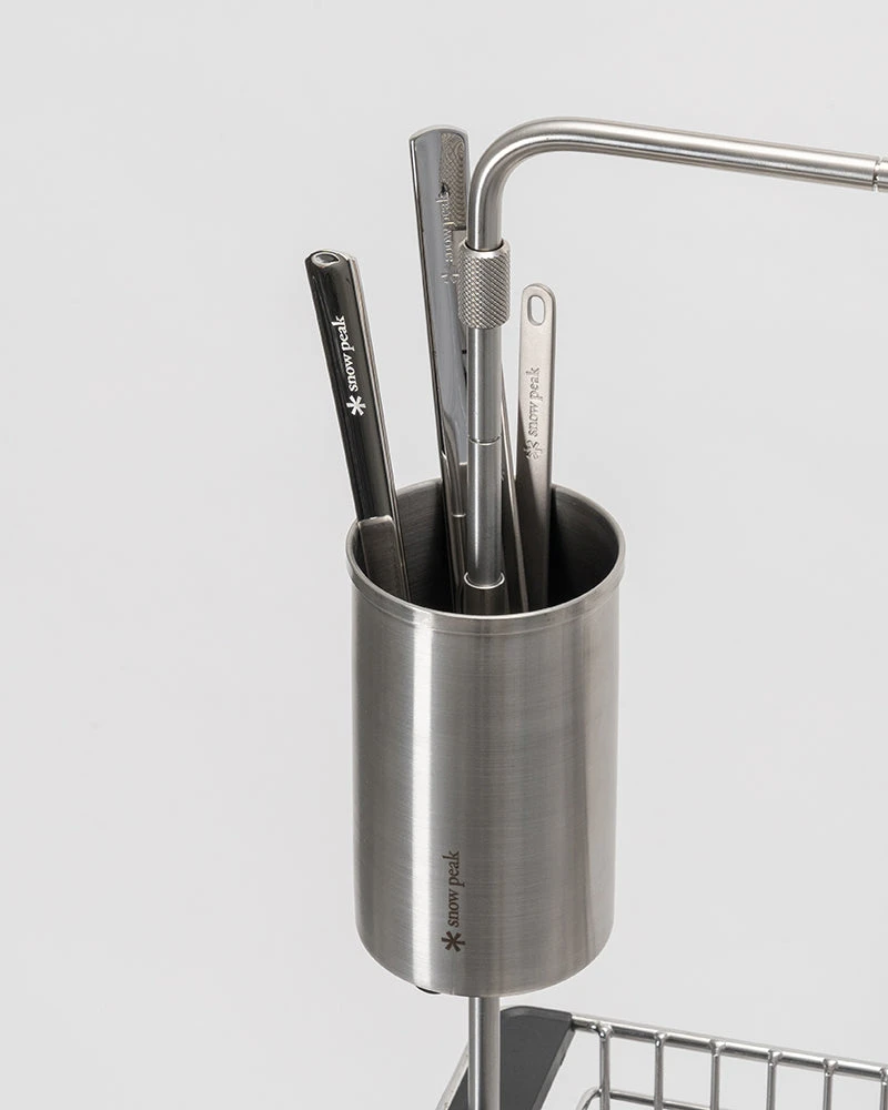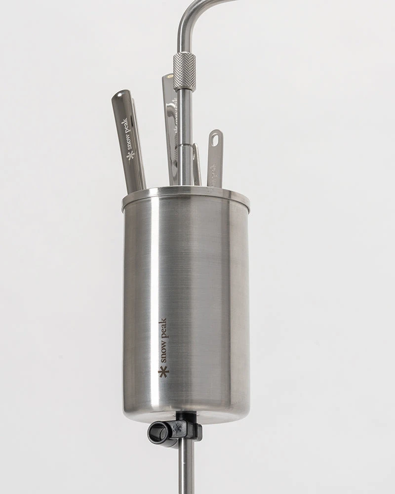The TTA Cylinder Stand is a component of the IGT system and TTA series that offers utensil storage options for IGT setups. The stand can be inserted into the TTA Frame to store small items and utensils or rest on a table. To use, slide the stand onto the TTA Frame, connect it to the TTA Clamp, and adjust the tension.