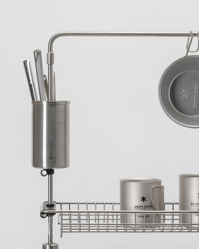 The TTA Cylinder Stand is a component of the IGT system and TTA series that offers utensil storage options for IGT setups. The stand can be inserted into the TTA Frame to store small items and utensils or rest on a table. To use, slide the stand onto the TTA Frame, connect it to the TTA Clamp, and adjust the tension.