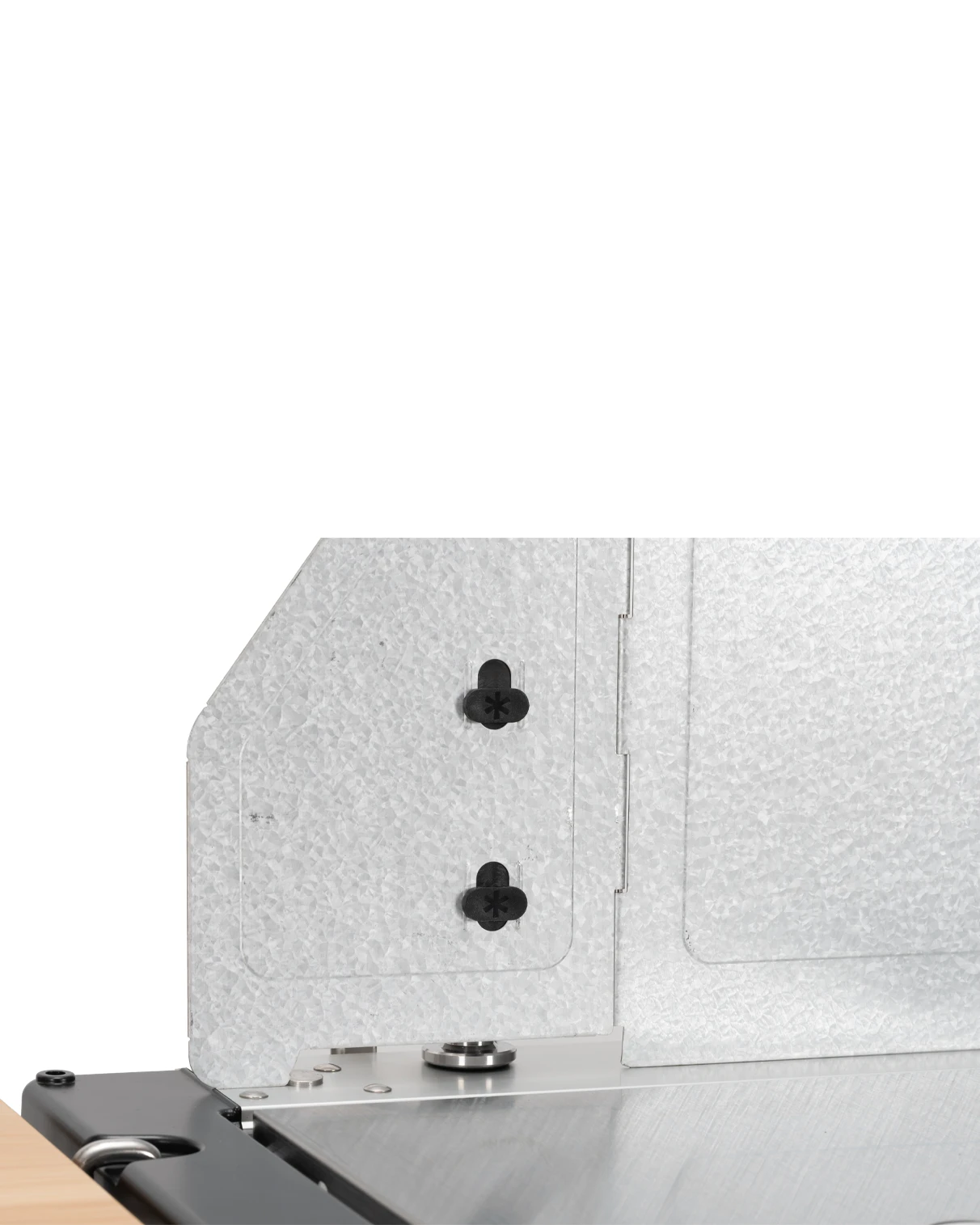 The TTA Windscreen is a component of the IGT system and is a foldable surface that protects the stove’s flames when cooking outdoors. It can be folded and used in two alternate ways to protect the stove flames from the wind. To use, insert each of the flange hooks into two TTA Clamp tools and adjust the tension.