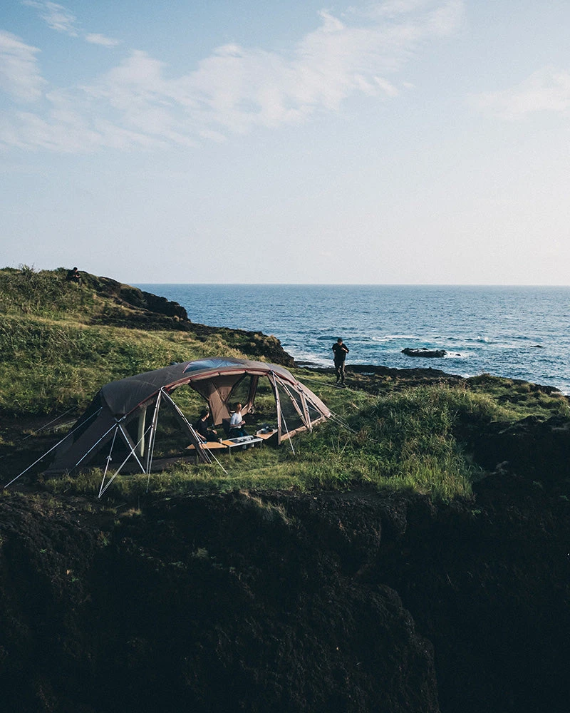 The Zekka is a large shelter that allows a panorama view of nature. With a gently curved design and wide-open front panel, the Zekka provides a sense of openness. The Zekka features two rooms, an inner room, and a gathering space. Pair the Zekka with the