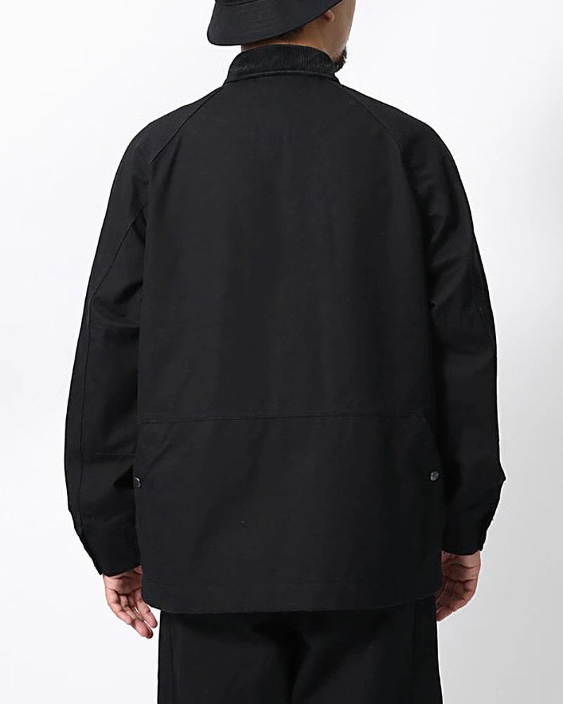 The Takibi Canvas Jacket is a high-density weave fire-resistant workwear jacket. The fabric is Kanecaron, a flame-retardant acrylic that offers water resistance and fire resistance. The Takibi Canvas Jacket features a corduroy collar, full zip and button closure, dual bust flap pockets, dual side flap pockets, and a large back pocket.