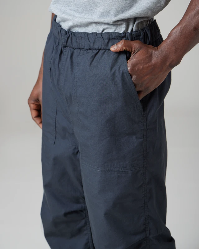 The Takibi Light Ripstop Easy Pants are lightweight flame-resistant parachute pants. The pants are breathable and made of cotton and modacrylic, a flame-resistant fabric. The Takibi Light Ripstop Easy Pants feature an elastic waist with drawcord, dual side pockets, back pocket, and hem drawcords.