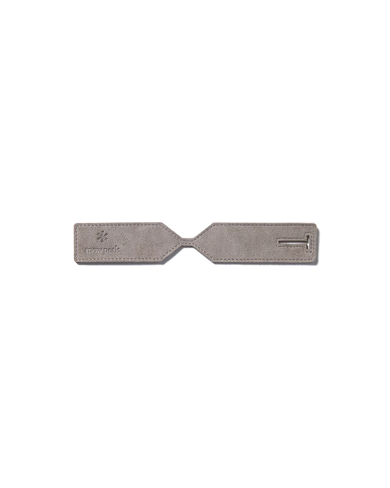 The Vegan Leather Travel Tag is an identification tag that can be added to luggage or camp gear. An embossed Snow Peak logo is featured on one side, with a pocket for name tags on the other. The material has a soft, suede-like feel, and is made partially from recycled and plant-based polyester.