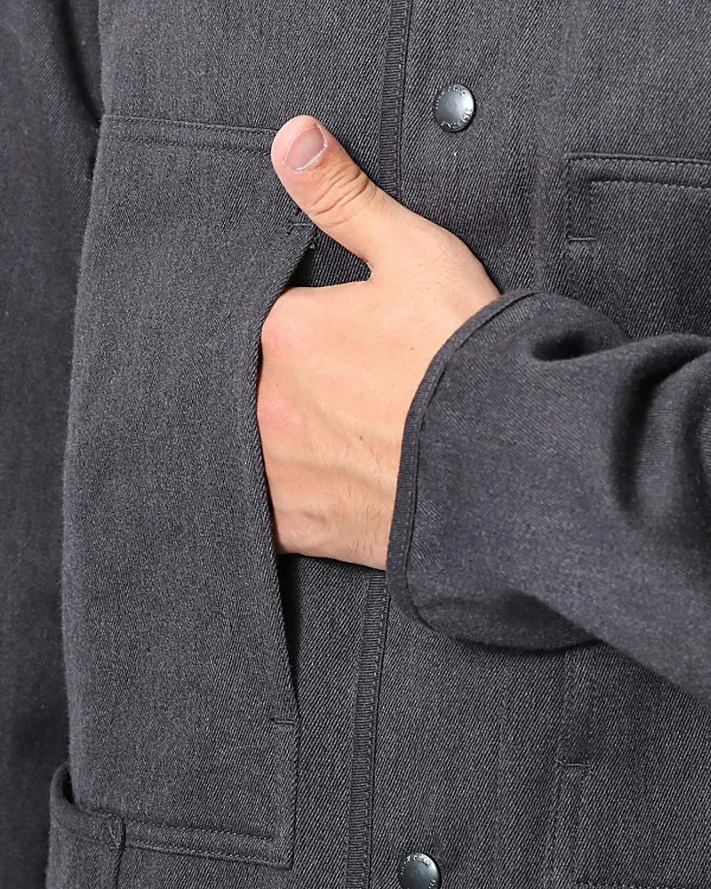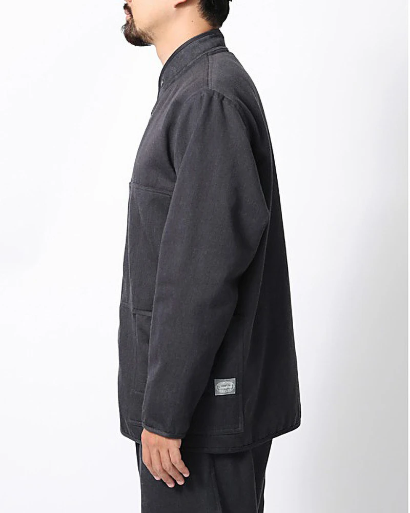 The W-Face Warm Jacket is a water-resistant soft shell jacket. It is made of cotton nylon twill with water repellency. The W-Face Warm Jacket features a stand collar, dual bust pockets, full button closure, and dual side pockets.